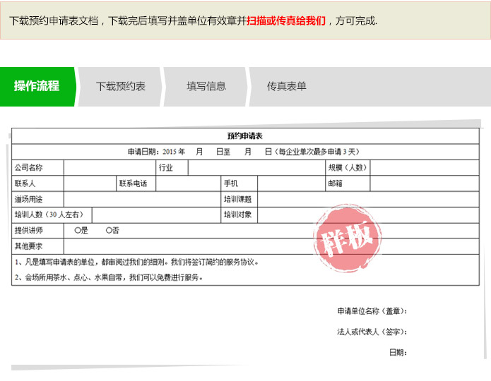 填寫相關資料信息,點擊確認按鈕,提交并下載,下載完后蓋單位有效章并掃描或傳真給我們,方可完成